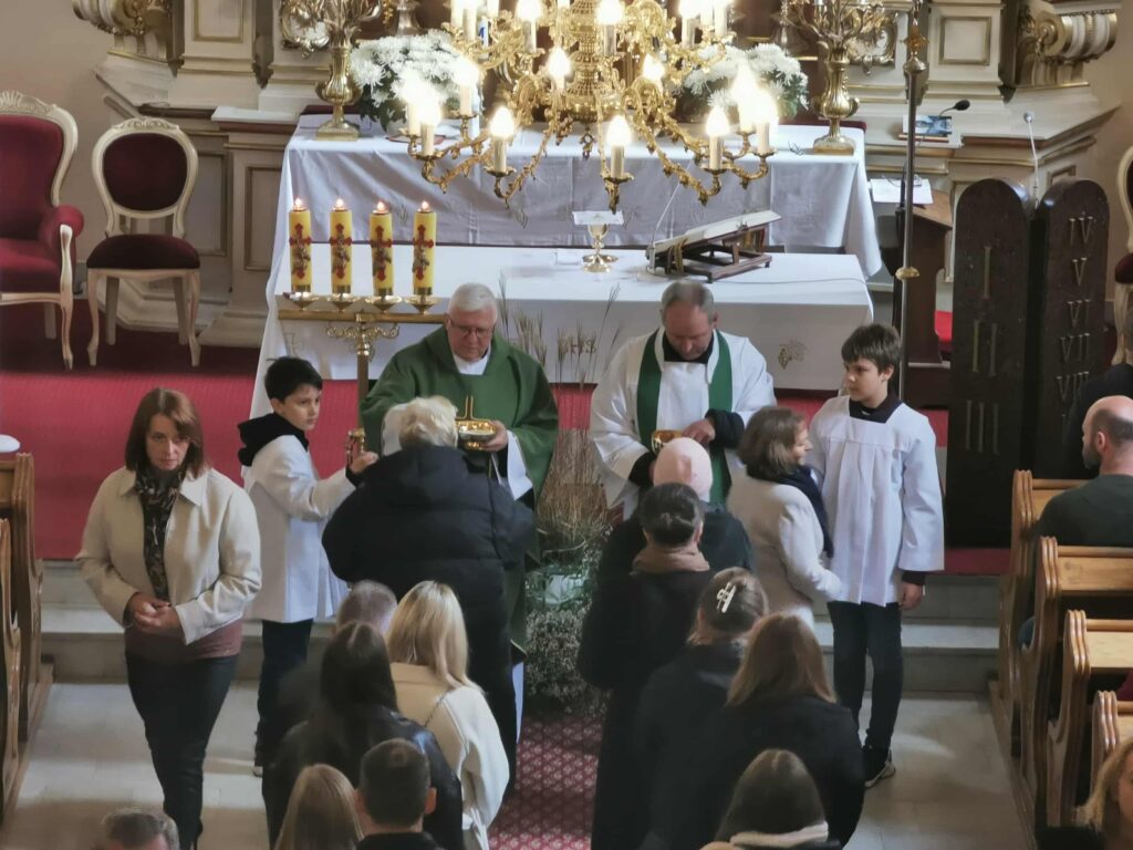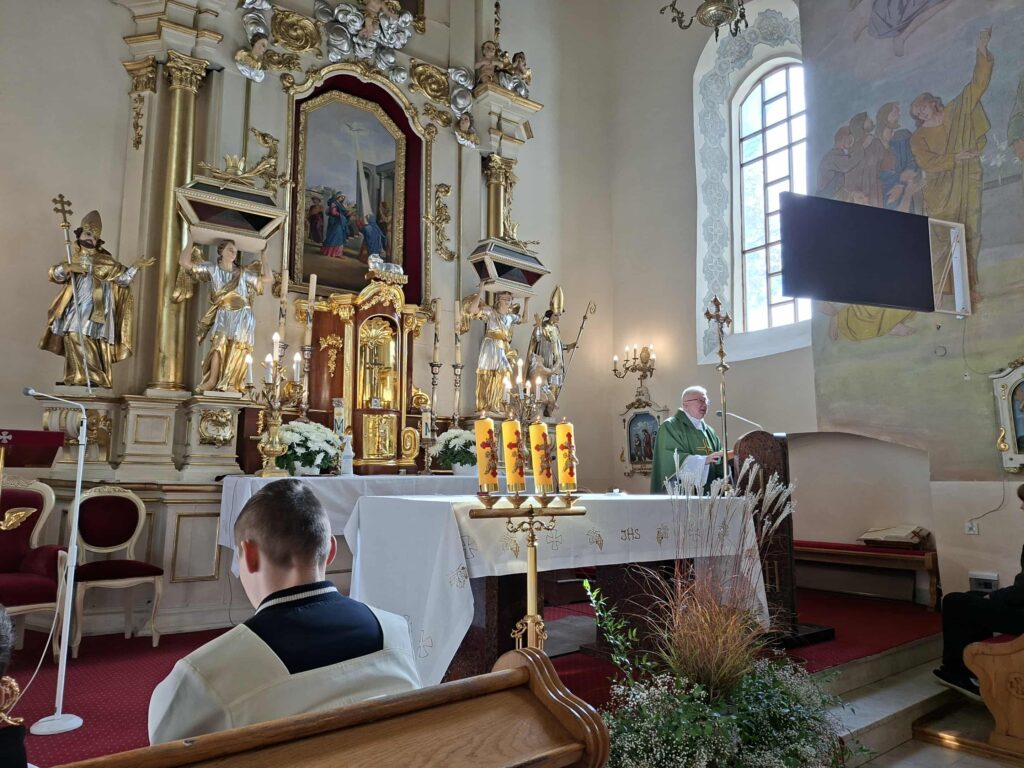 W niedzielę 19 października 2025 odbyła się w naszej parafii uroczysta Msza Św., którą odprawił oraz poświęcił tabernakulum i organy dziekan ksiądz kanonik Stanisław Chodźko. W Eucharystii oprócz licznie zgromadzonych parafian wzięli udział przedstawiciele władz miasta i powiatu: Burmistrz Ryk – Jarosław Żaczek, Starosta – Dariusz Szczygielski, Radosław Bagrowski, Katarzyna Janiszek, Lilianna Dąbrowska, Paulina Zaręba, a także radni gminy z naszej parafii – Jadwiga Jońska i Wojciech Piszczyński.