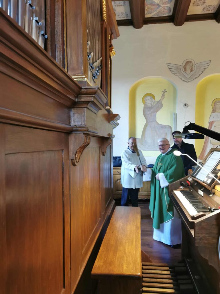 Po Mszy Świętej organomistrz Kamil Jankowski opowiedział o pracy, którą wykonał wraz z synem, aby organy w naszym kościele mogły cieszyć ucho, ale i pięknie wyglądać. Następnie odbył się koncert. Na odrestaurowanym instrumencie zagrał Paweł Listwon, a urzekającym sopranem zachwycała słuchaczy Anna Potyrała Listwon.